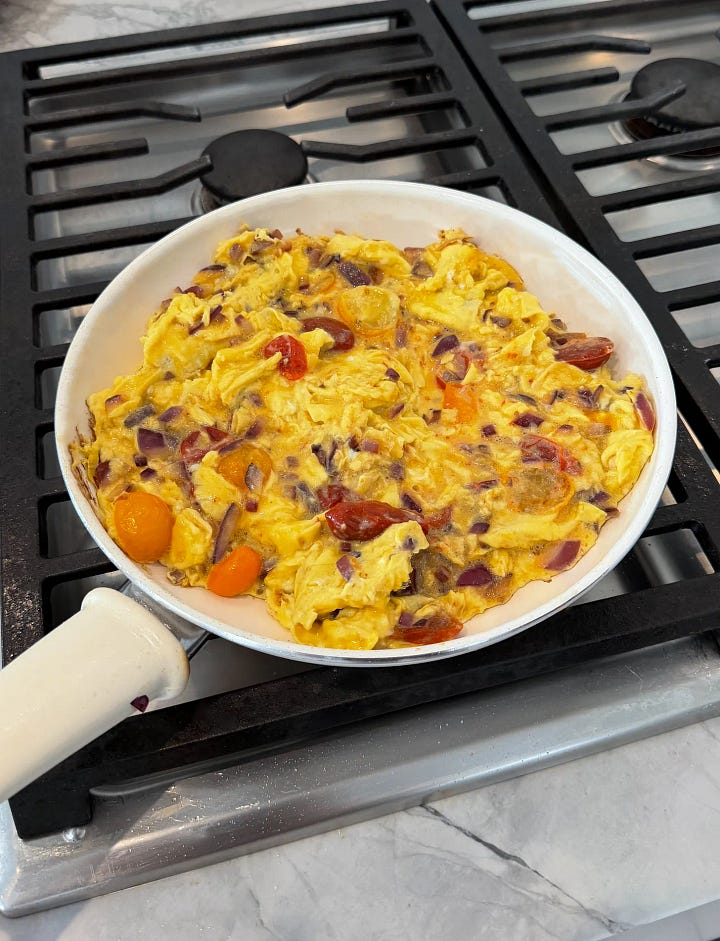 The type of protein-stacked breakfast I make for my professional athlete clients when they need serious fuel. Plus, it’s far more fun than a monstrous 18-egg omelette (& way more satisfying). Breakfast, but make it unapologetically egg-scessive.