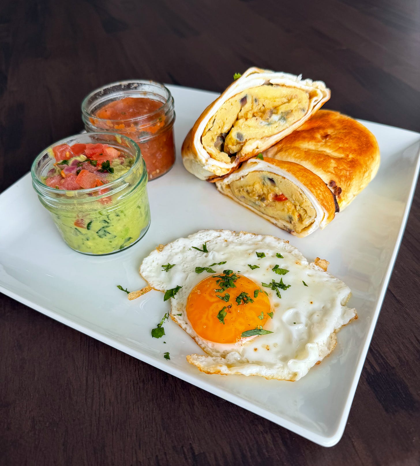 I present: the Egg-uritto. Egg-stuffed, egg-wrapped, egg-brushed, dipped in egg burrito. This 100g+ protein breakfast would fuel my clients in the NBA & NFL.