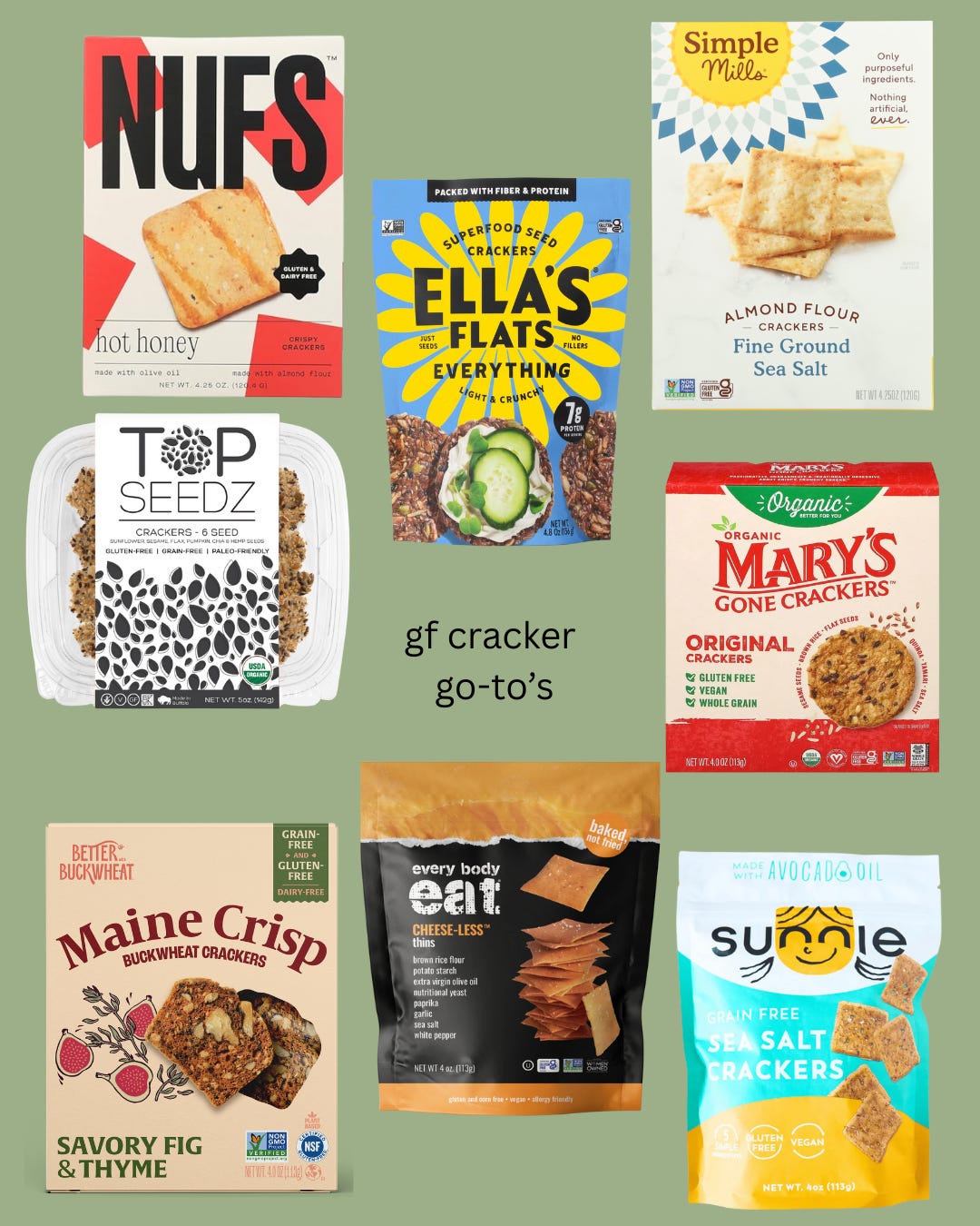 Snack board queens, rise. These are my GF cracker go-to’s—some new, and some just downright ol’ faithfuls: